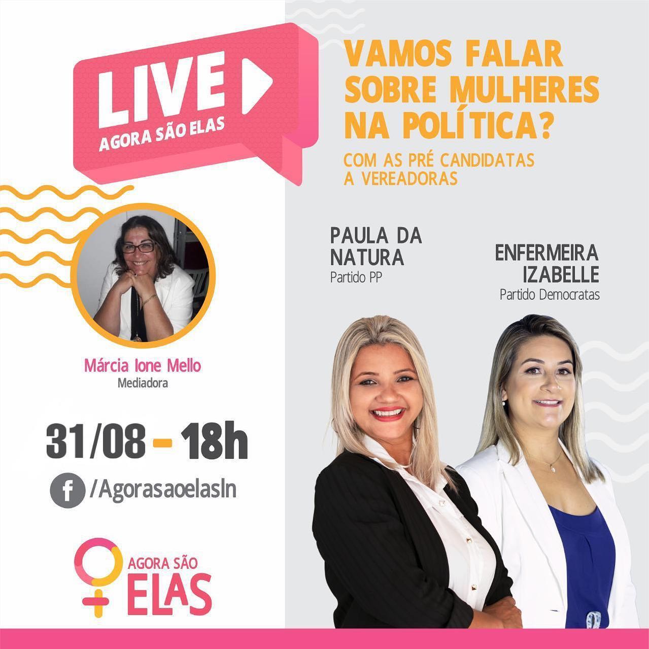 O movimento “Agora São Elas” promove, nesta segunda-feira (07/09), duas lives com a participação de pré-candidatas a vereadoras, que integram a base de ao PSDB